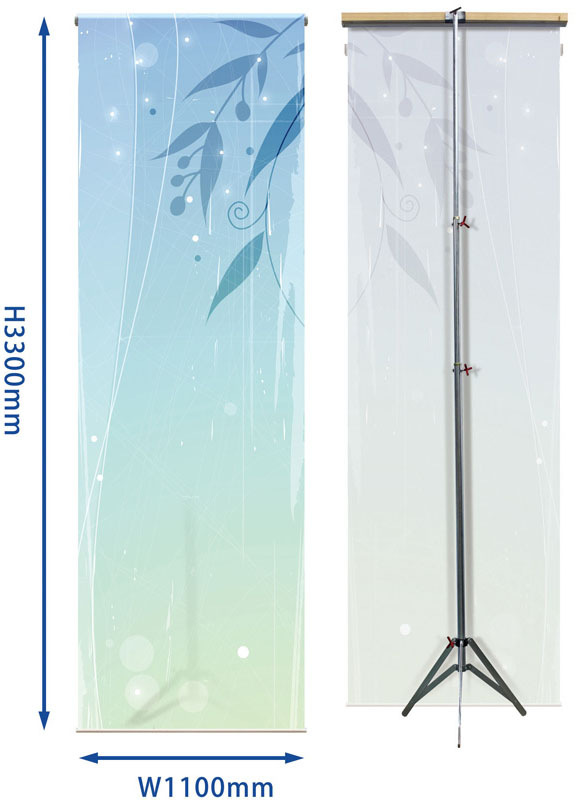上記の専用スタンドでセッティングし、 最大高さ360cmまで上げることができます。 管理面としてきれいに巻かなくてもシワが 目立たないので扱いが非常に簡単で特に お手入れも必要ありません。